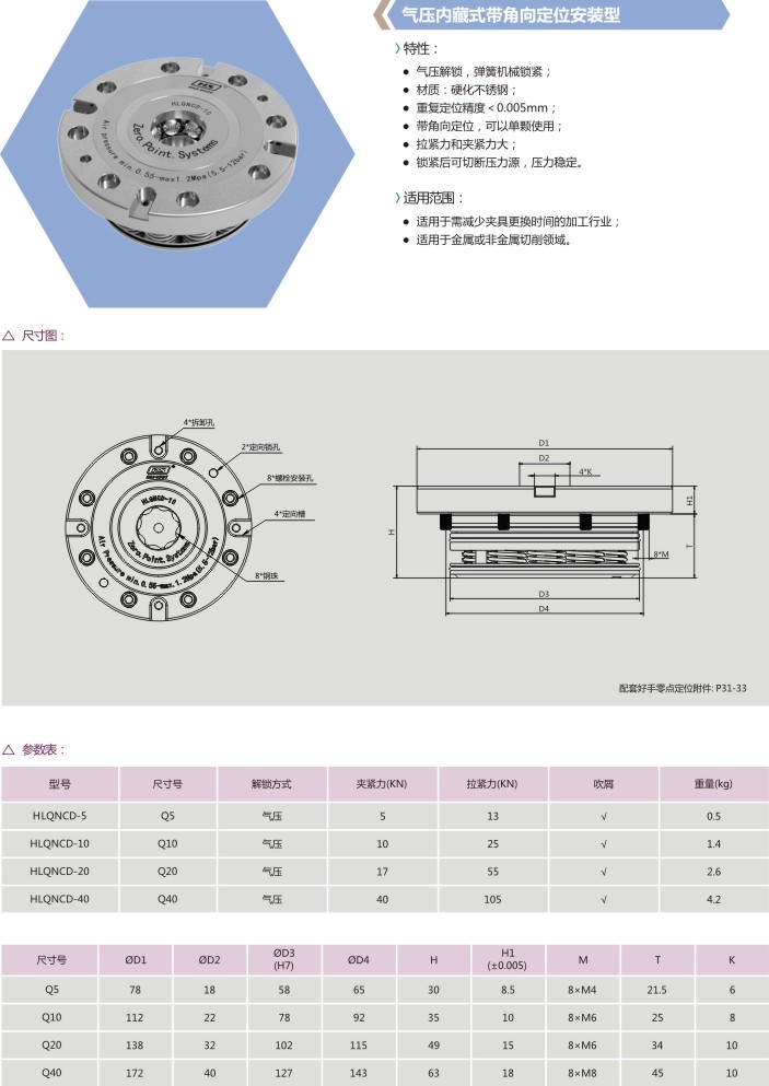气压内藏式带角向定位安装型